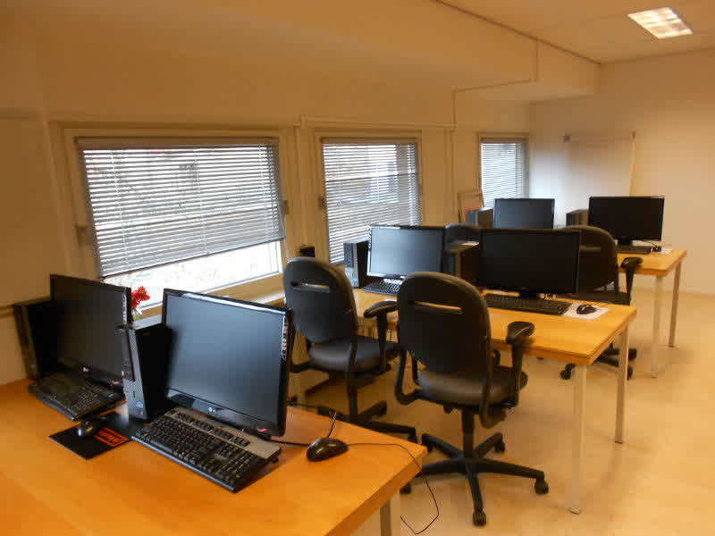In de inloopruimte staan pc’s die je kunt gebruiken. Vrijwilligers zitten klaar om je vragen te beantwoorden. De cursusruimte is voorzien van acht pc’s en een beamer zodat je goed kunt zien wat de docent aan het doen is. Koffie en gezelligheid vind je in de kantine verderop.